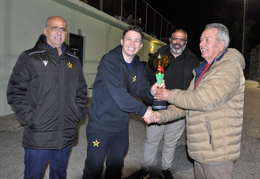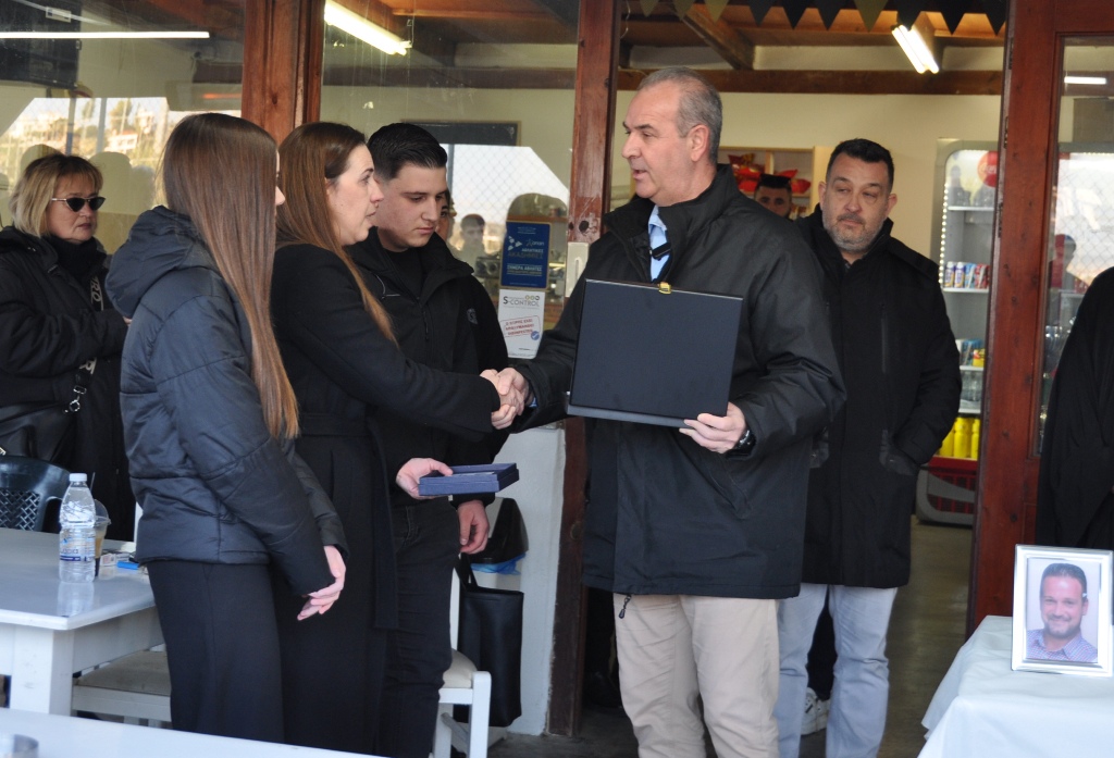 Το τελετουργικό άνοιξε με την επιμνημόσυνη δέηση που τέλεσε ο πατήρ Νικόλαος Φλουρής, παρουσία της συζύγου του Μανούσου, Τούλας και των δύο παιδιών του Αλέξανδρο και Μαρία, όπως και του γαμπρού του Φραγκίσκου. Για τον Μανούσο Γαλάνη μίλησε ο γενικός γραμματέας του διοργανωτή ΑΟ Άρη, Μπάμπης Χατζηδάκης. Εν συνεχεία τα τρία σωματεία παρέδωσαν τιμητικές πλακέτες στην οικογένεια του άτυχου Μανούσου, με τον πρόεδρο της ομάδας μας Νικόλαο Παπαδάκη να την παραδίδει στην σύζυγο και τα παιδιά του. Παρόντες ακόμη από την ομάδα μας ο Αντιπρόεδρος Κώστας Μανουσάκης, ο Τεχνικός Διευθυντής Ηλίας Ασπρομάτης και ο Γενικός Αρχηγός Μπάμπης Αποστολάκης.
