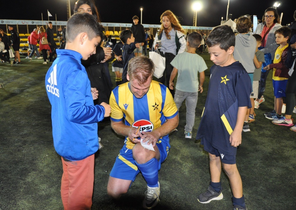 Τι πιο ωραία στιγμή, αληθινά! Να βλέπεις παιδιά (γιατί παιδιά, είμαστε όλοι όταν μπαίνουμε στο γήπεδο) όπως ο Λευτέρης Ψυχουντάκης, ο Λεωνίδας Μιχαηλίδης, ο Κώστας Ασπρομάτης, αλλά και οι πρωταγωνιστές της νίκης Ρότζεν Ιμπραχίμι και Ριχάρδος Χριστουλάκης να αποθεώνονται, να υπογράφουν αυτόγραφα και να φωτογραφίζονται με τους μικρότερους ποδοσφαιριστές της Ακαδημίας μας.
