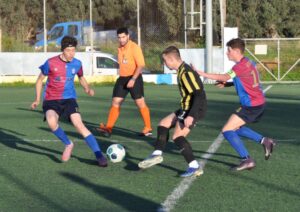 Οι συνθήκες ήταν δύσκολες με τον δυνατό άνεμο που έπνεε, αλλά η ομάδα του Κώστα Ασπρομάτη ήταν χάρμα ιδέσθαι και παρότι από το 42’ αγωνιζόταν με 10 παίκτες λόγω αποβολής του Ι. Χαραλαμπάκη με απευθείας κόκκινη δεν είχε πρόβλημα να φτάσει στην ευρεία νίκη.